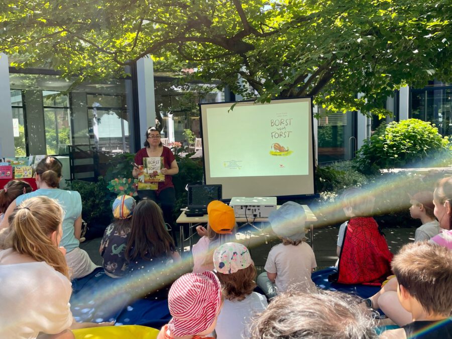 August 2023 - Bilderbuch-Workshops für 4-8-Jährige und 7-12-Jährige. In einer coolen Location haben wir Bilderbuch-Kino gemacht, Masken & Reime gebastelt und am Ende sogar ein eigenes kleines Bilderbuch erstellt. "Inspire Writing" at its best!